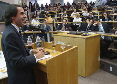Desde el punto de vista del público, estamos ante un engaño consentido, algo más pronunciado cuando el usuario de letras ajenas desarrolla pretensiones intelectuales y acepta dictar conferencias y firmar artículos, igual que estampa el nombre en un decreto o en una ley, suponiendo que las ideas y su expresión se rige por idéntico procedimiento que el orden administrativo. Así, el afán por labrarse una reputación de personaje culto ha llevado a José María Aznar a querer emular a Cánovas del Castillo, a Antonio Maura o incluso al conde de Romanones -todos miembros de doctas instituciones además de presidentes del Consejo-, y a prodigarse en conferencias de contenido trascendente, ya
